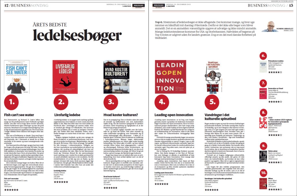 Kun tre danske bøger opnåede de eftertragtede seks ud af seks stjerner i Berlingske Business i 2013 – og Livsfarlig ledelse var en af dem, da den efter sommerferien blev anmeldt af Henrik Ørholst.